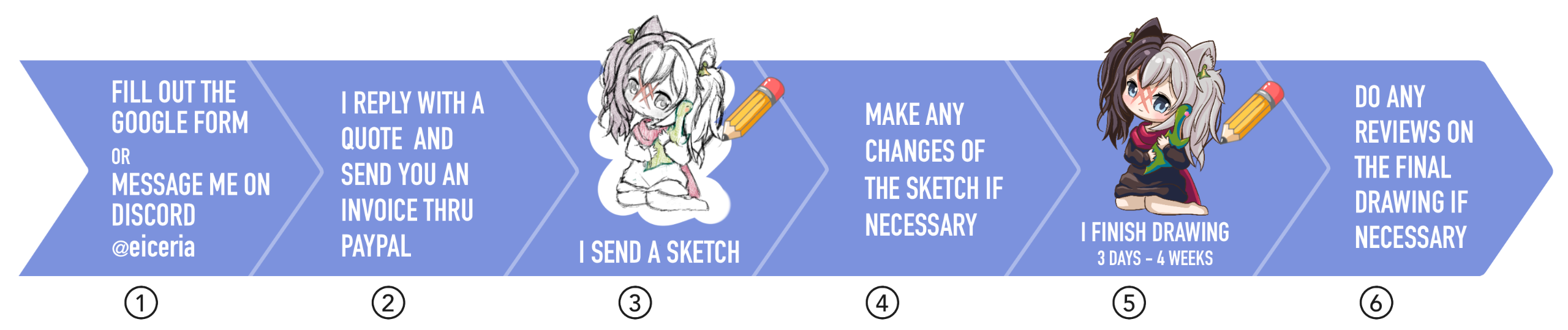 Please fill out the google form or contact me through discord @eiceria